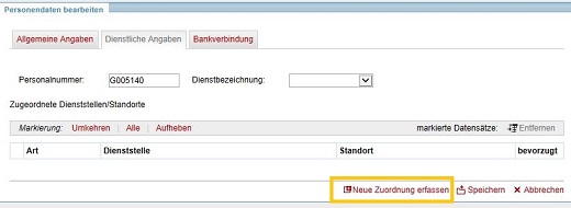 Kennzeichnen Sie Ihre hauptsächliche (aktuelle) Dienststellenzuordnung als bevorzugten Standort und schließen Sie Ihre Eingaben mit ÜBERNEHMEN ab.