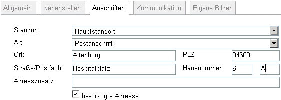 Beispiel (Reiter "Anschriften")