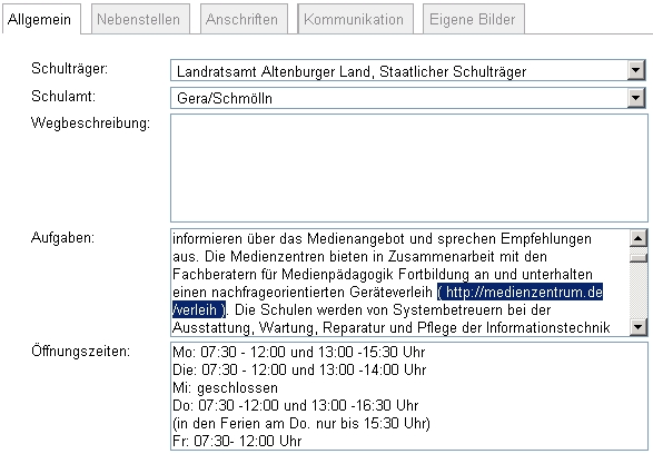 Diese Hilfe beschreibt die Datenpflege der Porträts der Thüringer Medienzentren in der Mediothek des Thüringer Schulportals.