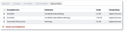 Mit Hilfe des [Durchsuchen]-Buttons können Sie die entsprechende Datei auf Ihrem Computer suchen oder einen Pfad in das Textfeld eingeben. Über [Hochladen] wird das Bild gespeichert, anschließend eine Virenprüfung durchgeführt und im Porträt angezeigt.