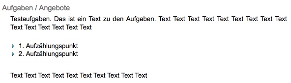 Aufzählung innerhalb der Textfelder Aufgaben und Öffnungszeiten