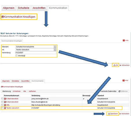 Erst mit dem Speichern Button unterhalb der Liste werden Ihre Eingaben gespeichert und im Schulporträt sichtbar.