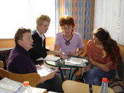 Die zweitägige Fortbildung baute auf der Lehrerfortbildung mit Dr. Esther Jansen O’Dwyer auf, die im Oktober 2009 in Weimar stattgefunden hatte. Auch im April 2010 konnten die Thüringer Berufsschullehrkräfte von Schweizer Know-how profitieren, diesmal präsentiert von Wilma Willi. Frau Willi, die mit zu den ersten Teilnehmenden im Projekt „bi.li – Zweisprachiger Unterricht an Berufsschulen“ im Kanton Zürich gehörte und ihren Unterricht an der Berufsschule Bülach bereits seit mehreren Jahren bilingual gestaltet, gab viele ihrer praktischen Erfahrungen weiter. Die Veranstaltung ging ein auf Methoden, die guten bilingualen Unterricht kennzeichnen, Chancen und Möglichkeiten, mit dem bilingualen Unterricht die kommunikative Kompetenz der Auszubildenden zu erhöhen und fokussierte dann auf Hörverstehen im bilingualen Unterricht. Zugleich bot die Fortbildung das Podium für die Erarbeitung bilingualer Sequenzen für den eigenen Unterricht in fächerspezifischen Gruppen.