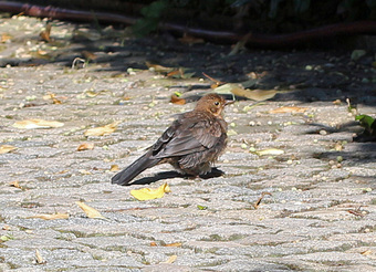 Das Foto hehört zur Serie "Amseln". Es zeigt eine junge Amsel (Turdus merula), auch Schwarzdrossel genannt, eine Vogelart der Familie der Drosseln. Es gelten die Nutzungsbedingungen der Mediothek und Pixiothek.
