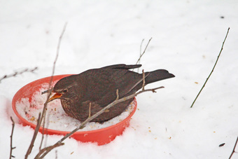 Das Foto hehört zur Serie "Amseln". Es zeigt eine Amsel (Turdus merula), auch Schwarzdrossel genannt, eine Vogelart der Familie der Drosseln. Die Männchen sind schwarz gefärbt und haben einen gelben Schnabel, das Gefieder der Weibchen ist größtenteils dunkelbraun. Es gelten die Nutzungsbedingungen der Mediothek und Pixiothek.