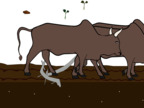 Ochsen auf einem Acker