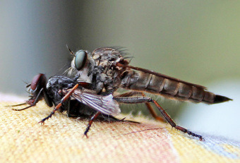 Das Foto gehört zur Serie "Fliegen". Es zeigt eine Raubfliege. Raubfliegen oder Jagdfliegen (Asilidae) sind eine Familie der Zweiflügler und jagen vornehmlich pflanzenfressende Insekten. Es gelten die Nutzungsbedingungen der Mediothek und Pixiothek.