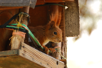 Das Foto hehört zur Serie "Nagetiere". Es zeigt ein Eurasisches Eichhörnchen (Sciurus vulgaris), häufig nur als Eichhörnchen bekannt, in einem Vogelhäuschen. Es ist der einzige natürlich in Mitteleuropa vorkommende Vertreter aus der Gattung der Eichhörnchen. Das Bild ist unter CC0 lizenziert und kann somit frei verwendet werden.