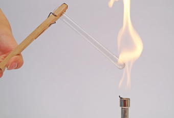 Reagenzglasklammer erzeugt Abstand zur Flamme