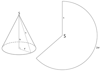 Das Bild gehört zur Serie "Geometrie Körper". Es zeigt einen geraden Kreiskegel und seine aufgerollte Mantelfläche. Das Bild ist unter CC0 lizenziert und kann somit frei verwendet werden.