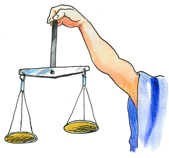 Das Bild gzeigt ein gezeichnetes Symbolbild für Werte, Normen, Gerechtigkein, Recht. Es gelten die Nutzungsbedingungen der Mediothek und Pixiothek.