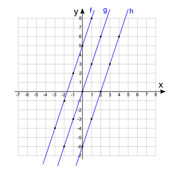 Lineare Funktionen mit gleichem Anstieg im Koordinatensystem