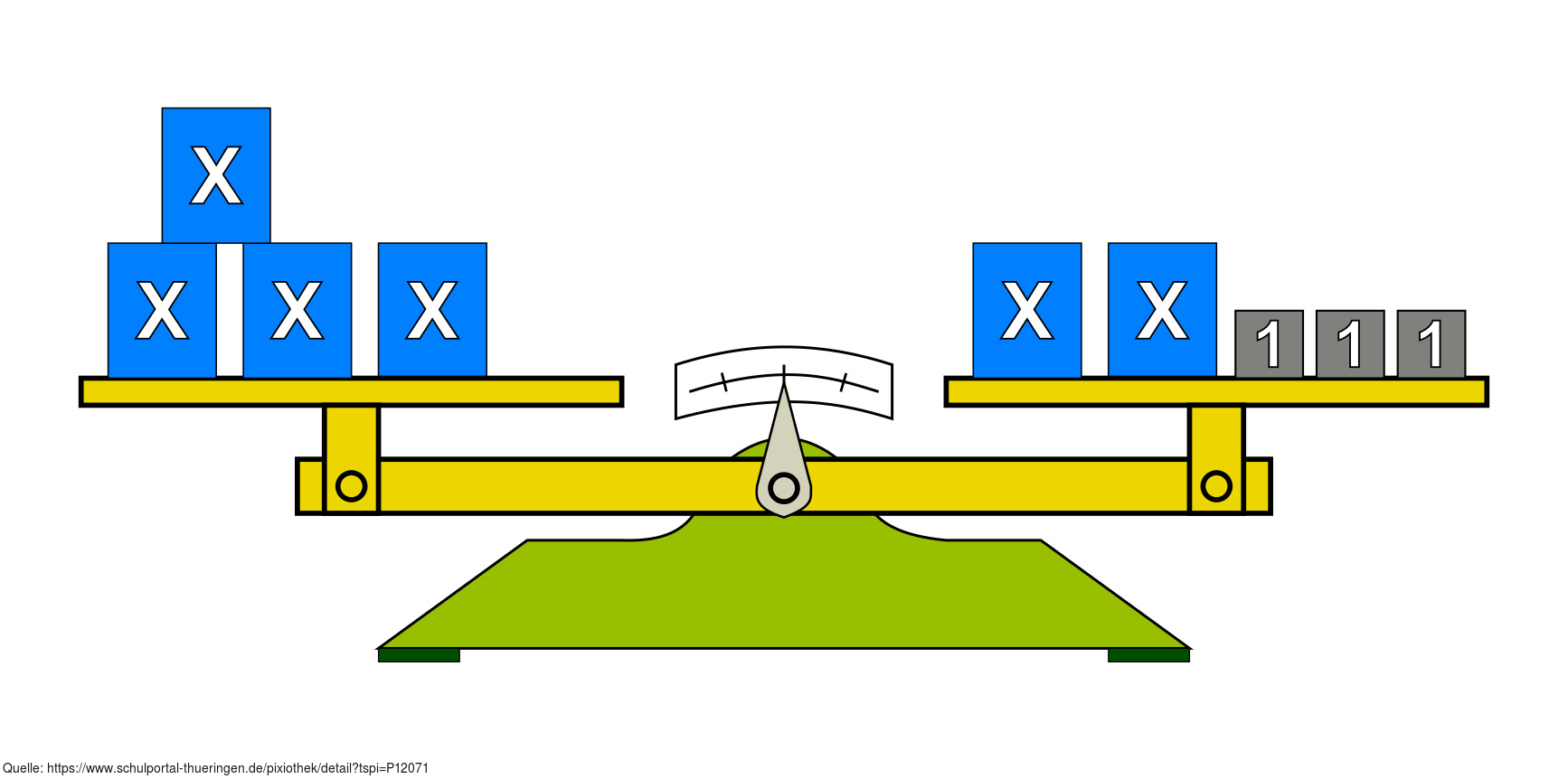 Das Bild gehört zur Serie "Mathematik, Gleichungen". Es veranschaulicht die Lösung einer linearen Gleichung durch Äquivalenzumformung mit dem Bild einer Waage. Zur Gleichung 25 veranschaulichen die Bilder 25-1 bis 25-4 die Umformungsschritte. Das Bild ist unter CC0 lizenziert und kann somit frei verwendet werden.