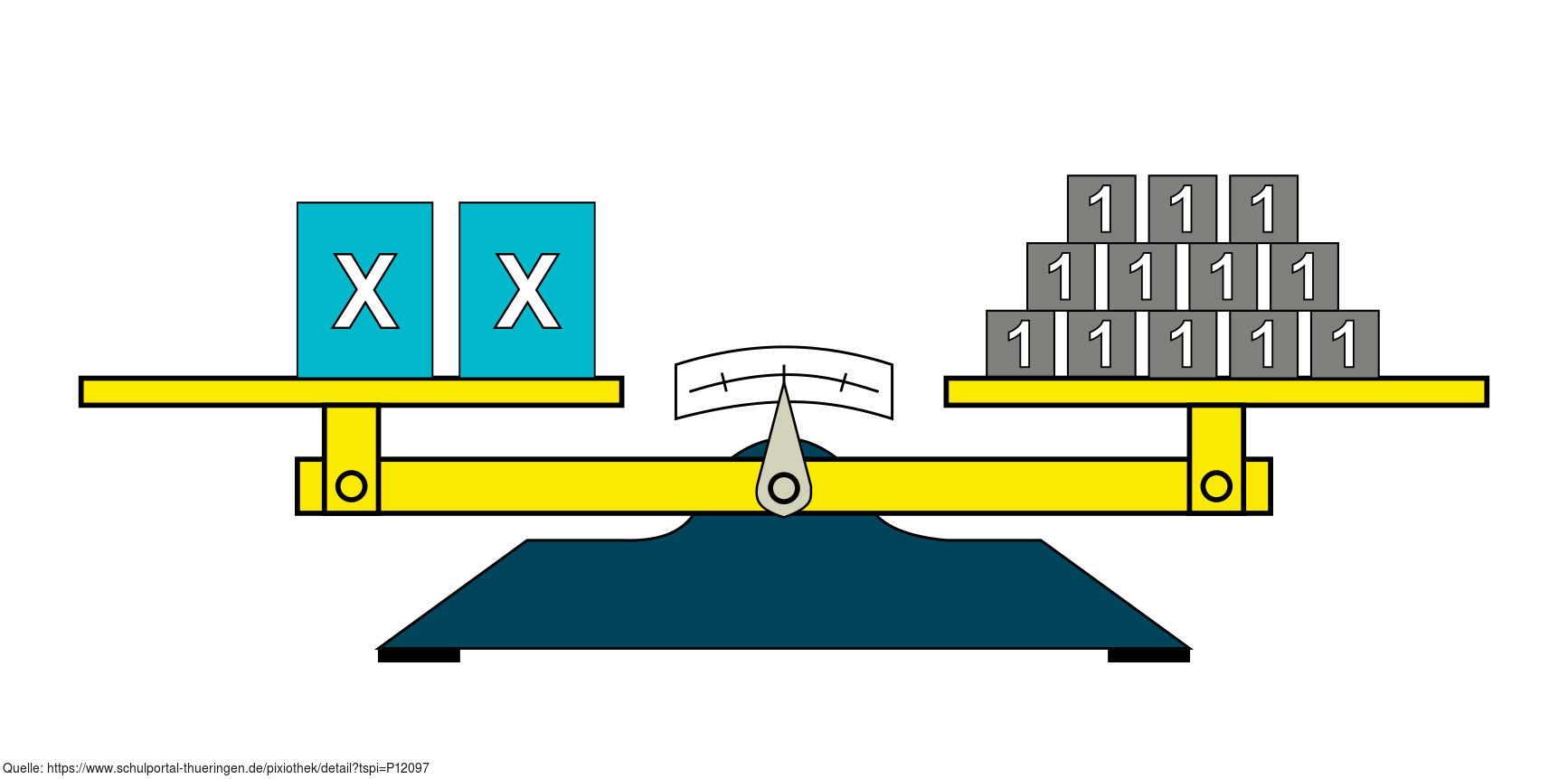 Das Bild gehört zur Serie "Mathematik, Gleichungen". Es veranschaulicht eine lineare Gleichung durch Körper auf einer Waage. Das Bild ist unter CC0 lizenziert und kann somit frei verwendet werden.