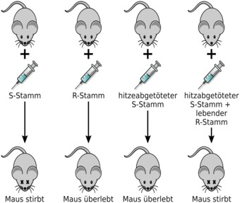 Griffith-Experiment: Das Erbgut ist materiell und kann übertragen werden.