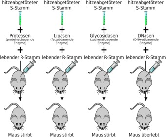 Darstellung des Avery-Experiments: Beweis, dass DNA das Erbgut ist.