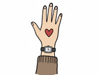 Arm, Armbanduhrn Hand mit Herz-Tattoo
