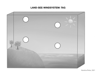 Das Bild gehört zur Serie „Zirkulationssysteme der Erde“. Es verdeutlicht das Land-See-Windsystem der Erde. Bild-Variante: s/w; unbeschriftet; Tag. Es gelten die Nutzungsbedingungen der Mediothek und Pixiothek.