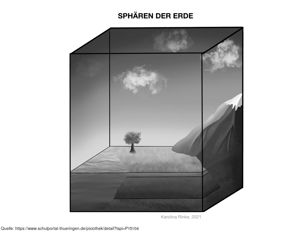 Das Bild verdeutlicht die Sphären der Erde (Hüllenaufbau). Bild-Variante: s/w; unbeschriftet. Es gelten die Nutzungsbedingungen der Mediothek und Pixiothek.