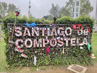Jakobsweg - Camino Francés: Willkommensschild an der Grenze des Innenstadtbezirks von Santiago de Compostela