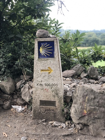 Das Bild gehört zur Serie "Jakobsweg - Camino Francés". Abgebildet ist ein Wegweiser am Pilgerweg. Es gelten die Nutzungsbedingungen der Mediothek und Pixiothek.