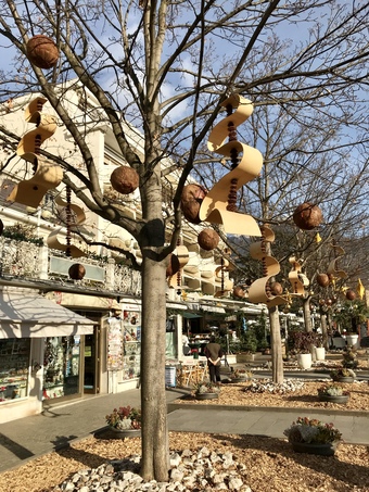 Weihnachtliche Dekoration mit Kugeln an einem Baum. Es gelten die Nutzungsbedingungen der Mediothek und Pixiothek.