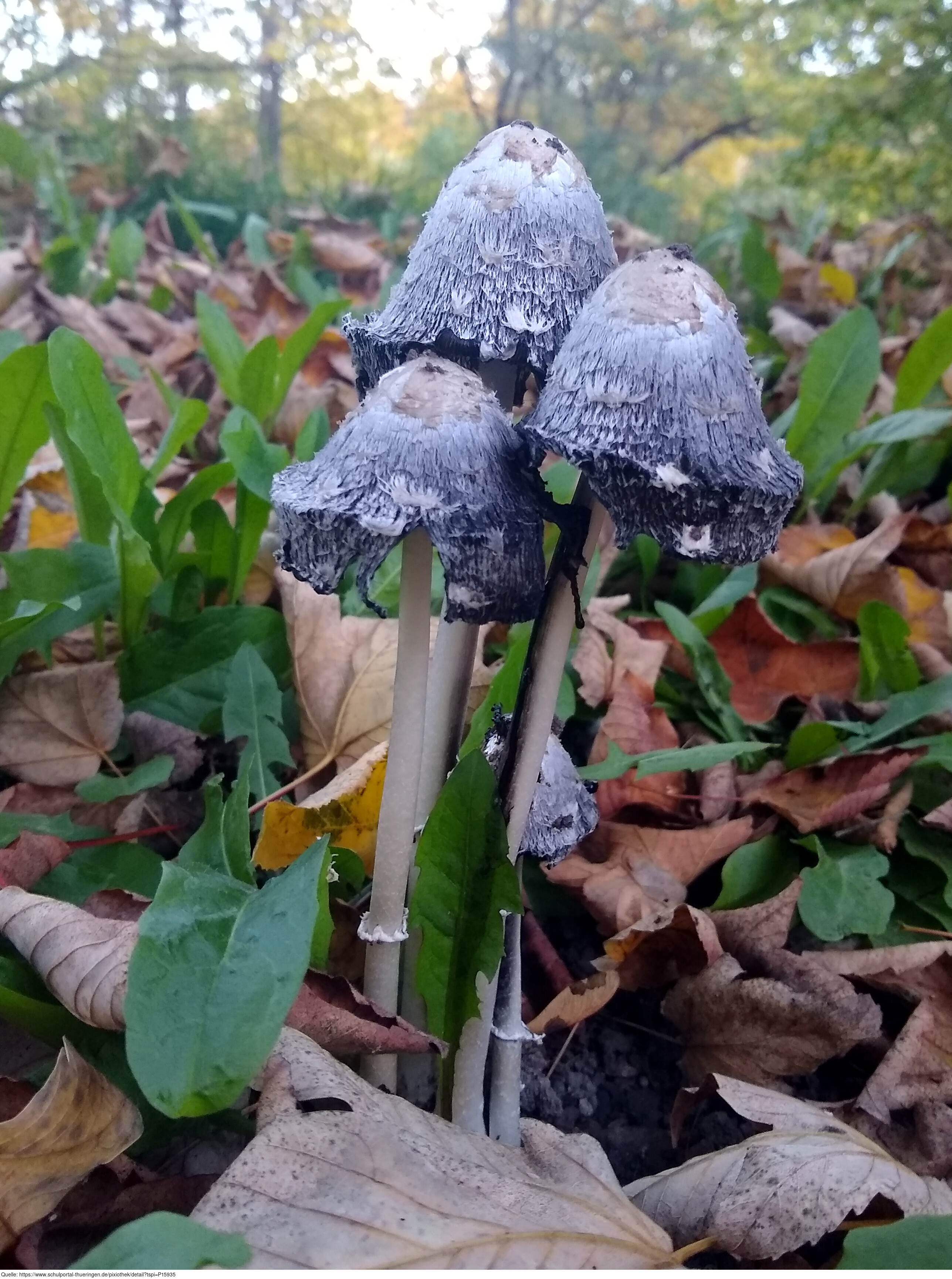 Das Bild zeigt eine Gruppe von Schopf-Tintlingen (Coprinus comatus). Das Bild ist unter CC0 lizenziert und kann somit frei verwendet werden.