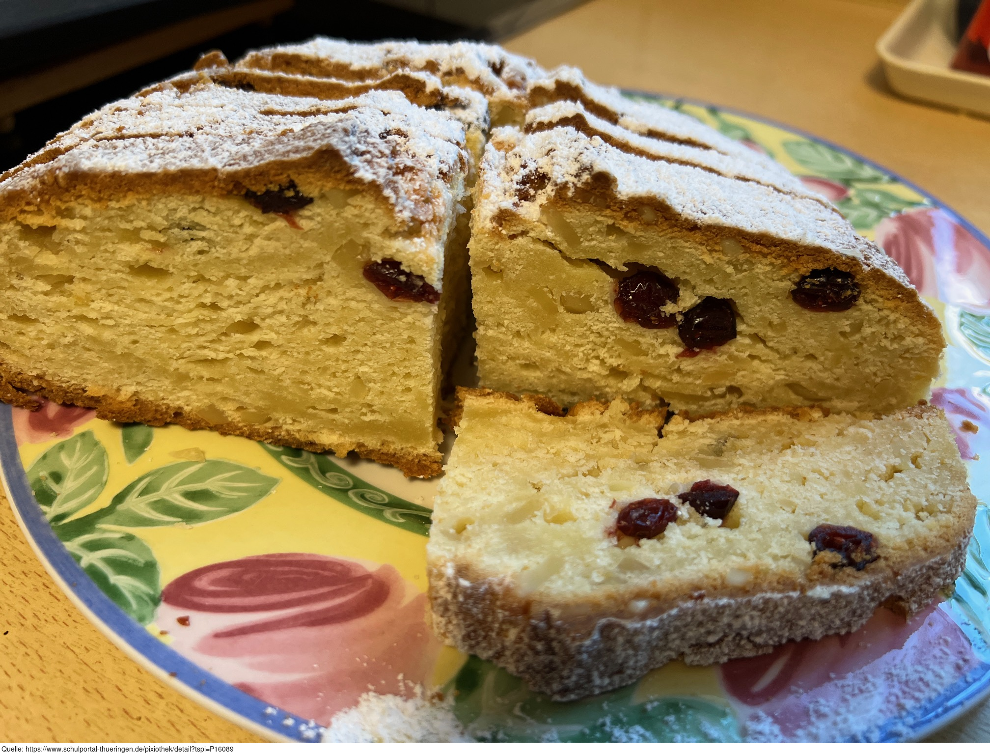 Das Bild zeigt einen Weihnachtsstollen bzw. Christstollen. Es gelten die Nutzungsbedingungen der Mediothek und Pixiothek.