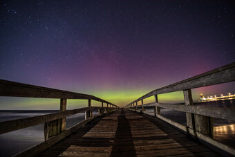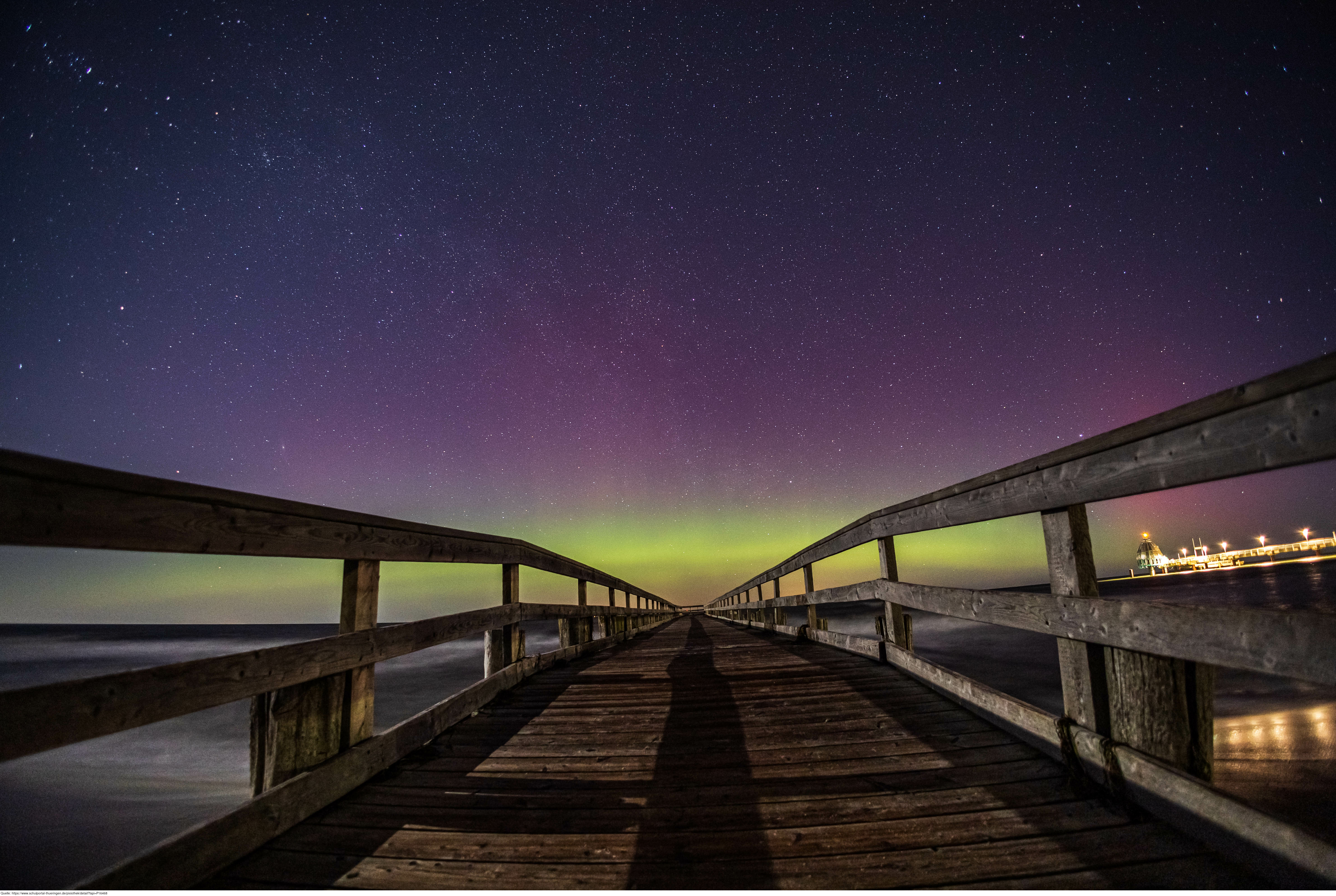 Das Bild gehört zur Serie „Polarlichter 2023 Zingst“. Es zeigt Polarlichter, die in der Nacht vom 26. Auf den 27. Februar 2023 gegen 0:30 in Zingst auf dem Darß mit einer Canon EOS RP aufgenommen wurden. Die Kameraeinstellungen: ISO 1600; Blende 2,8; 15 Sekunden Belichtung; manueller Modus. Mit bloßem Auge waren die Polarlichter in dieser Nacht deutlich zu sehen, aber natürlich nicht so farbenfroh wie auf dem Foto. Es gelten die Nutzungsbedingungen der Mediothek und Pixiothek.