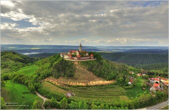 Das Bild gehört zur Serie „Luftbilder Leuchtenburg“. Es zeigt die Leuchtenburg bei Seitenroda, aufgenommen im April 2019.