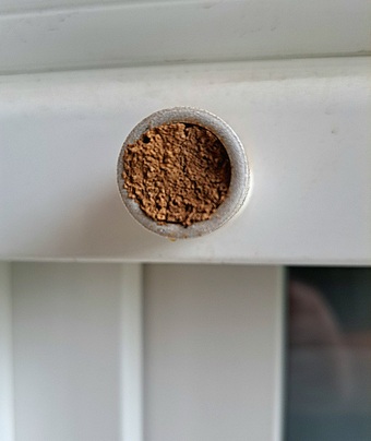 Das Foto gehört zur Serie "Bienen". Es zeigt das Nest einer Gehörnten Mauerbiene in einem Rollladenstopper. Das Bild ist unter CC0 lizenziert und kann somit frei verwendet werden.