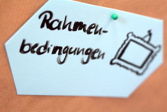 Das Bild zeigt eine Moderationskarte mit der Aufschrift "Rahmenbedingungen", fotografiert von Elisabeth Scherer für SeLL, HHU Düsseldorf. Es gelten die Nutzungsbedingungen der Mediothek und Pixiothek.