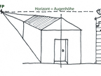 Das Bild gehört zur Serie "Projektionsarten". Es zeigt die Kavalierprojektion am Beispiel eines Gebäudes. Es gelten die Nutzungsbedingungen der Mediothek und Pixiothek.