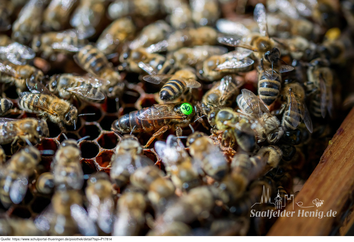 Bienenkönigin umringt von Arbeiterinne...