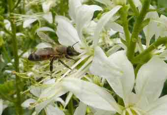 Honigbiene beim Sammeln auf einer Diptamblüte