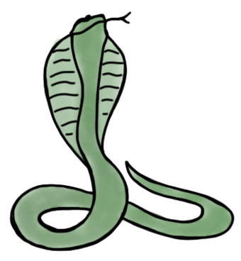 Das Bild zeigt eine gezeichnete Kobra. Das Bild ist unter CC0 lizenziert und kann somit frei verwendet werden. Es ist neben weiteren Bildern auch hier zu finden: https://moodlelab.moodleschule.de/
