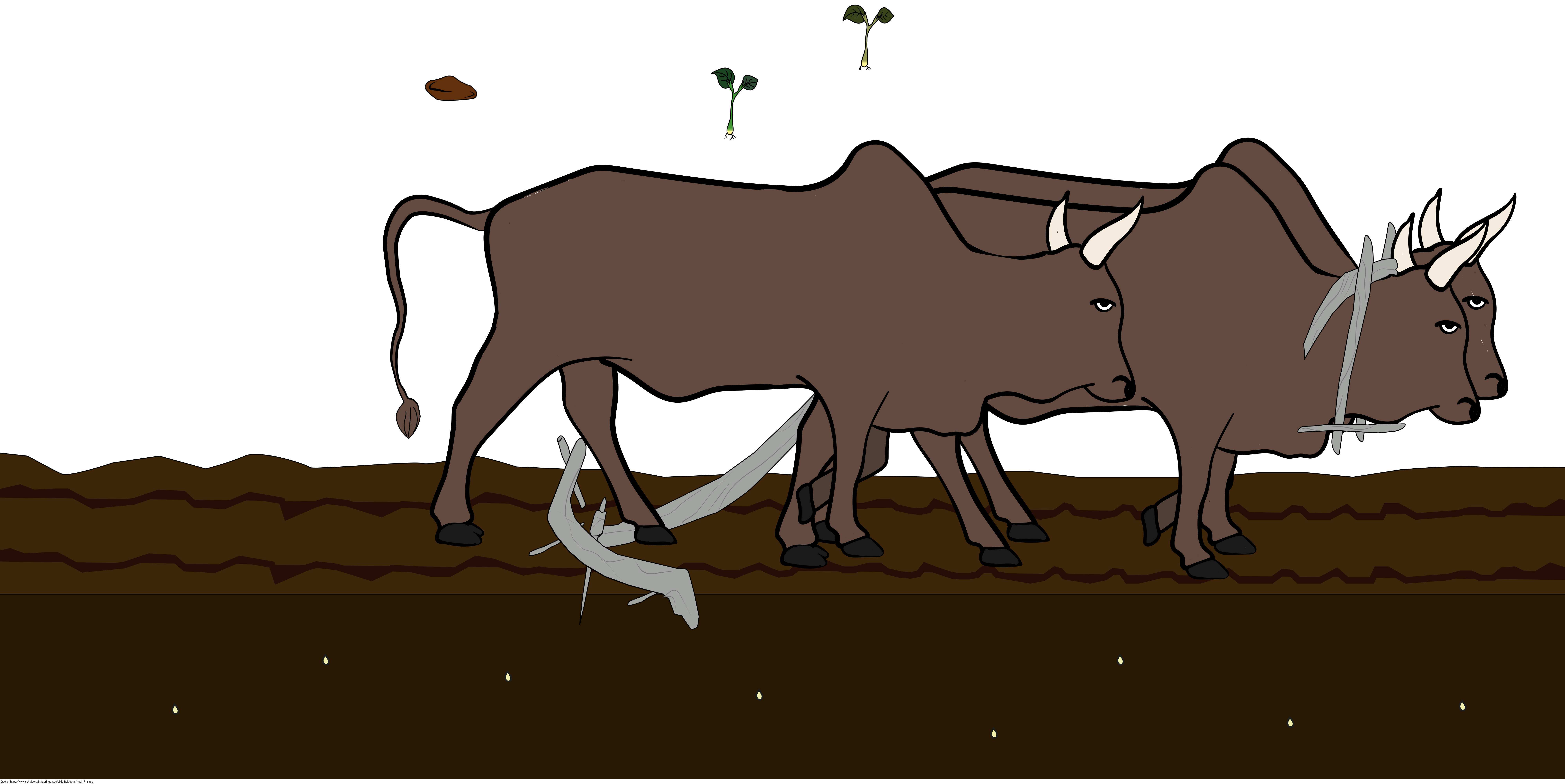 Das Bild zeigt gezeichnete ackernde Ochsen. Es stammt aus dem Projekt "Didactica Bavaria Bohemia" - Materialpakete daraus siehe "Verwandte Medien (Auswahl)". Das Bild ist unter CC0 lizenziert und kann somit frei verwendet werden.