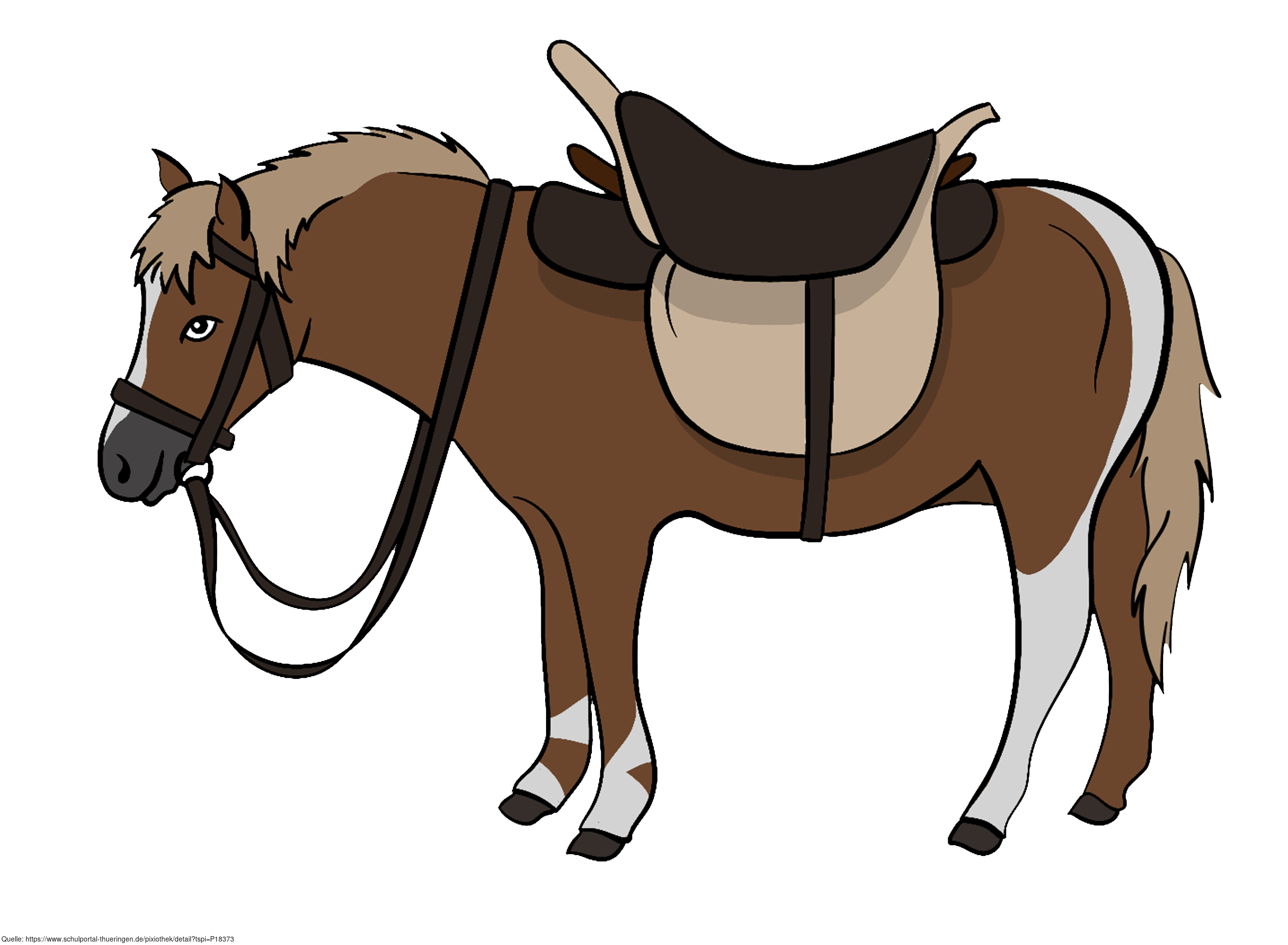 Das Bild zeigt ein gezeichnetes gesatteltes Pferd. Es stammt aus dem Projekt "Didactica Bavaria Bohemia" - Materialpakete daraus siehe "Verwandte Medien (Auswahl)". Das Bild ist unter CC0 lizenziert und kann somit frei verwendet werden.