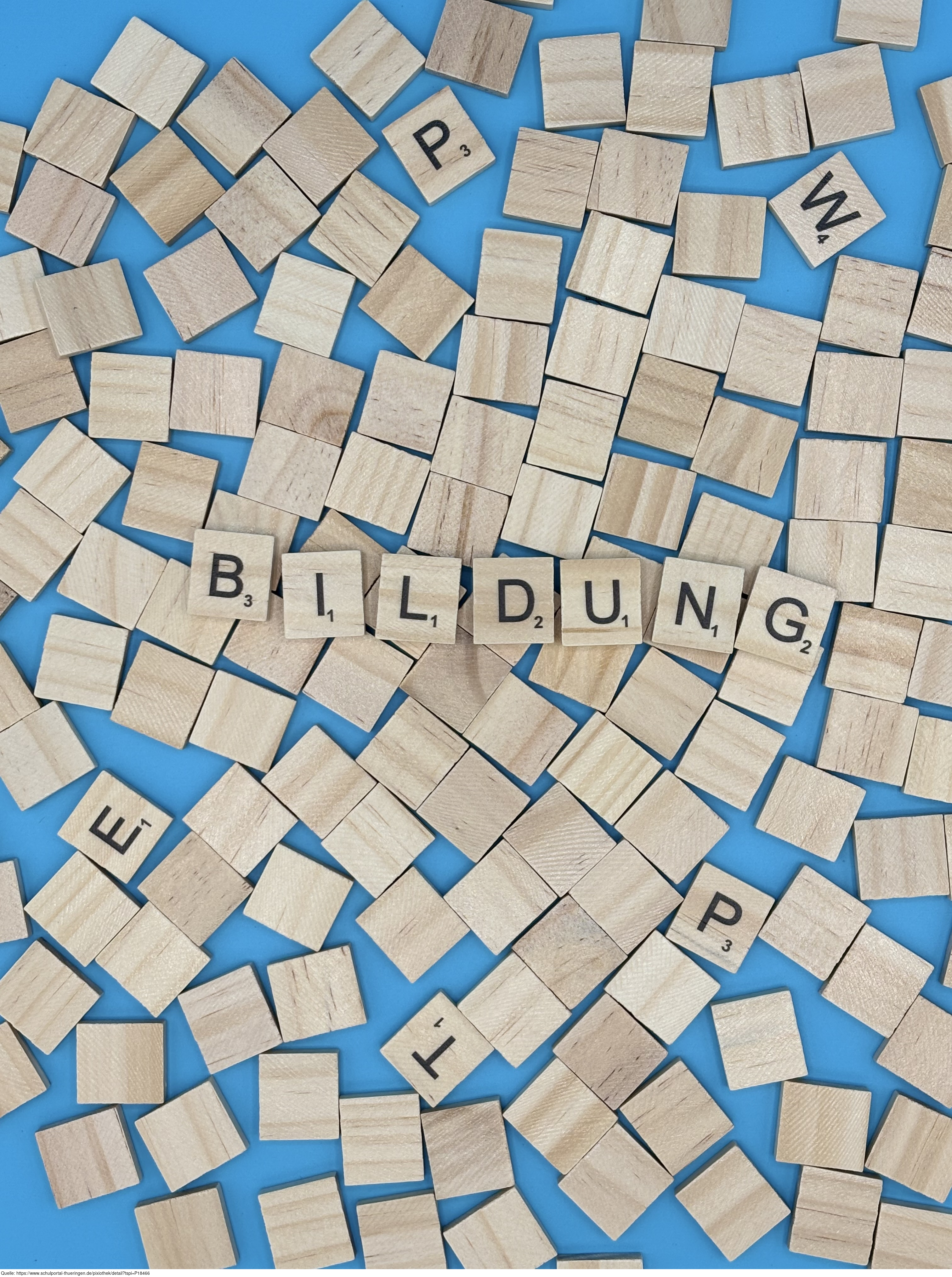 Aus Buchstaben wurde das Wort "Bildung" gelegt. Es gelten die Nutzungsbedingungen der Mediothek und Pixiothek.