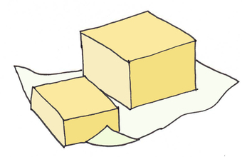 Das Bild zeigt ein gezeichnetes Stück Butter (farbig). Es gehört zur Serie "Ernährungspyramide zum Basteln und Gestalten" und findet u.a. im gleichnamigen Lernobjekt unter https://www.schulportal-th​ueringen.de/web/guest/medi​a/detail?tspi=18517 Verwendung. Es gelten die Nutzungsbedingungen der Mediothek und Pixiothek.