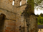 Das Bild zeigt die Ruine des ehemaligen Dominikanerinnen-Nonnenklosters St. Maria Magdalena als Stiftung der Weidaer Vögte aus dem 13. Jahrhundert. Der ursprünglich romanische Kirchenbau wurde aus Bruchsteinen gemauert und erhielt später gotische Spitzbogenfenster. Nach Auflösung des Klosters im 16. Jh. diente die Kirche als Getreidelager.