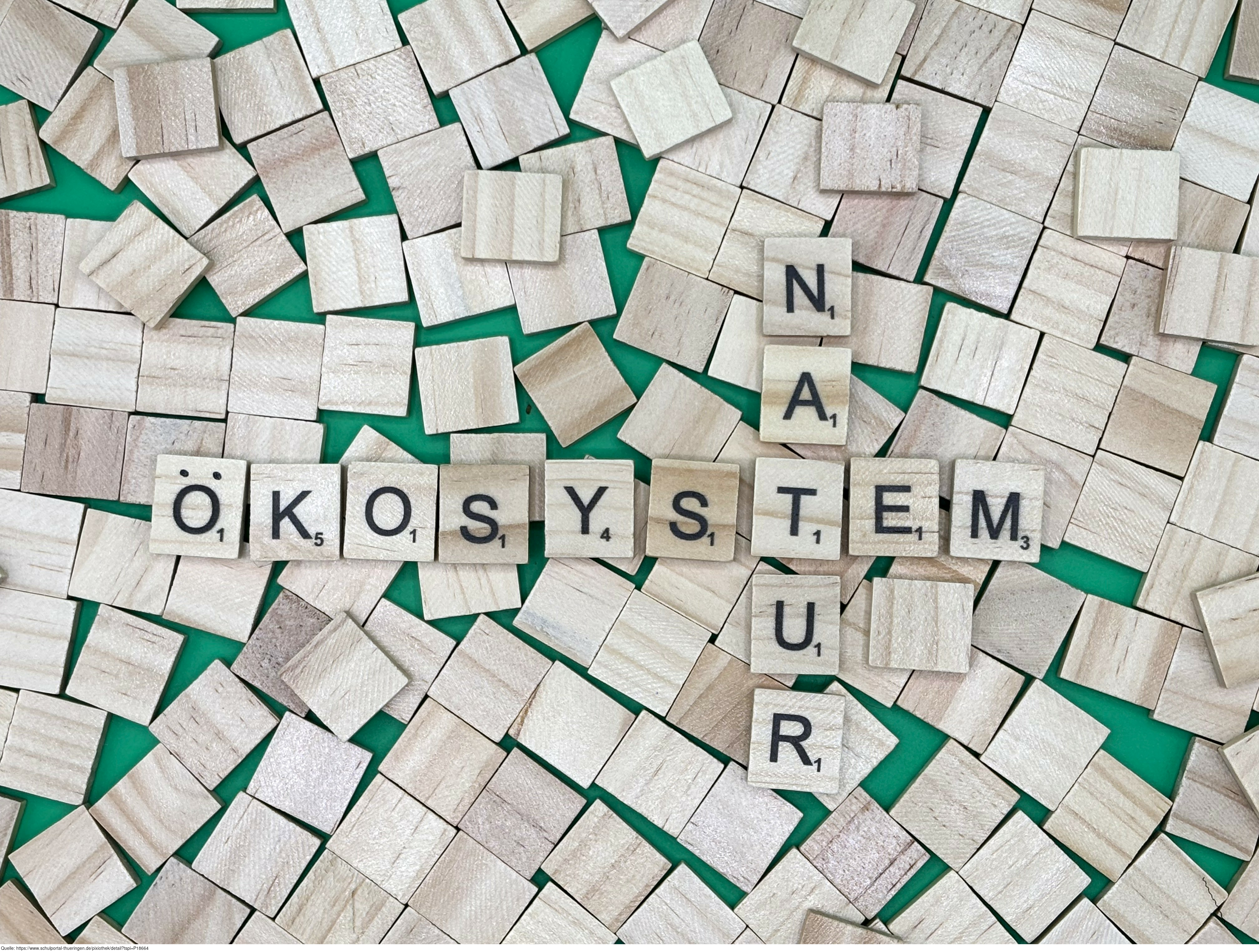 Aus Buchstaben wurden die Begriffe "Ökosystem" und "Natur" gelegt. Es gelten die Nutzungsbedingungen der Mediothek und Pixiothek.