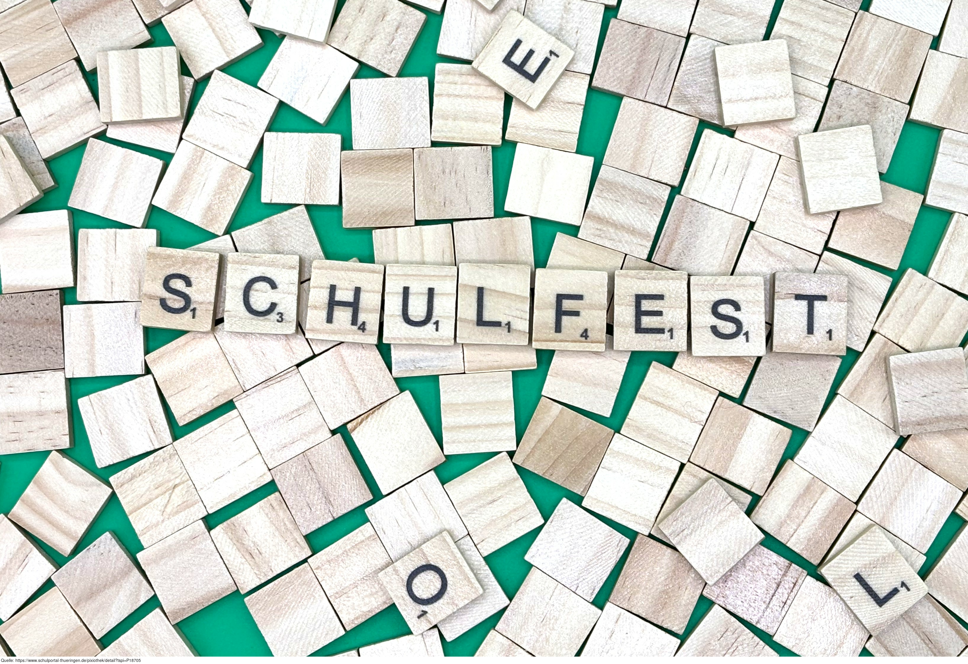Aus Buchstaben wurde der Begriff „Schulfest" gelegt. Es gelten die Nutzungsbedingungen der Mediothek und Pixiothek.
