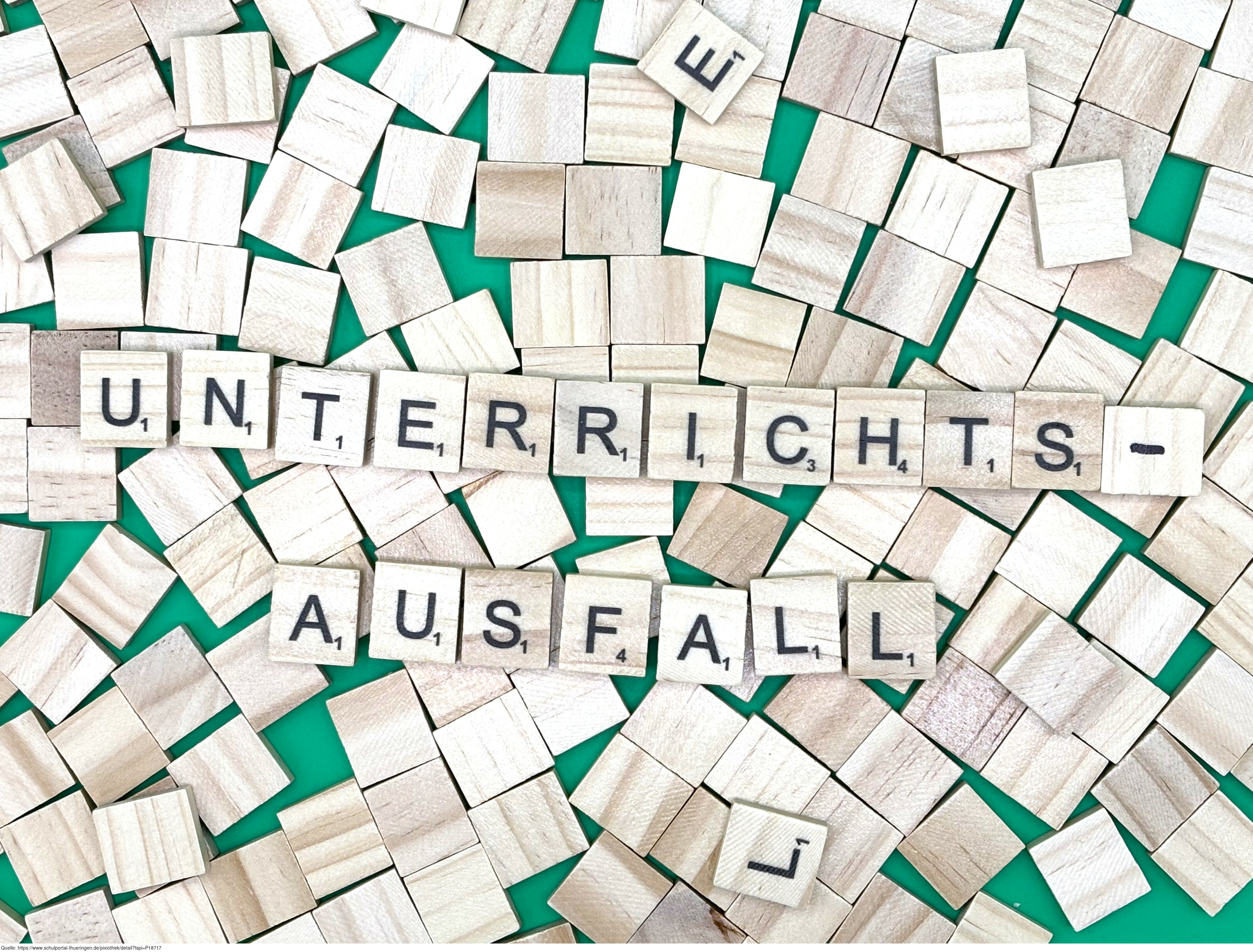Aus Buchstaben wurde der Begriff „Unterrichtsausfall" gelegt. Es gelten die Nutzungsbedingungen der Mediothek und Pixiothek.