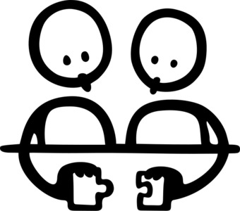 Die Zeichnung zeigt eine symbolhafte Szene zur Darstellung von Partnerarbeit. Das Bild ist unter CC0 lizenziert und kann somit frei verwendet werden. Es ist neben weiteren Bildern auch hier zu finden: https://cocomaterial.com