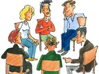 Die Zeichnung zeigt eine symbolhafte Szene zur Darstellung von Partnerarbeit. Das Bild ist unter CC0 lizenziert und kann somit frei verwendet werden. Es ist neben weiteren Bildern auch hier zu finden: https://cocomaterial.com