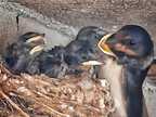 Das Foto gehört zur Serie "Schwalbenfreundliches Haus". Es zeigt junge Rauchschwalben. Das Nest befindet sich in einer Scheune, die für Vögel und Fledermäuse einige offene Durchflugsmöglichkeiten bereithält. Es gelten die Nutzungsbedingungen der Mediothek und Pixiothek.