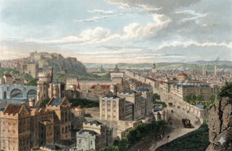 Die High Street oder Royal Mile in Edinburgh (choloriert)