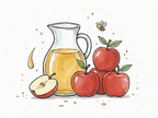 Das Bild zeigt eine Ansicht auf dem ApfelGut Erfurt. Auf einem Tisch mit einer blau-weiß karierten Tischdecke stehen Gläser, Karaffen und Äpfel bereit. Im Hintergrund befindet sich ein Holzzaun, der das Areal begrenzt. Es gelten die Nutzungsbedingungen der Mediothek und Pixiothek.