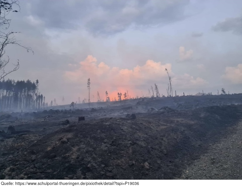 Das Bild wurde beim Waldbrand in Thüringen im Juli 2025 aufgenommen. Es gelten die Nutzungsbedingungen der Mediothek und Pixiothek.